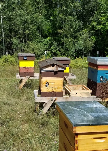 We raise locally adapted bees for surviving and production in Northern Michigan and offer healthy products harvested with care from, well cared for bees.